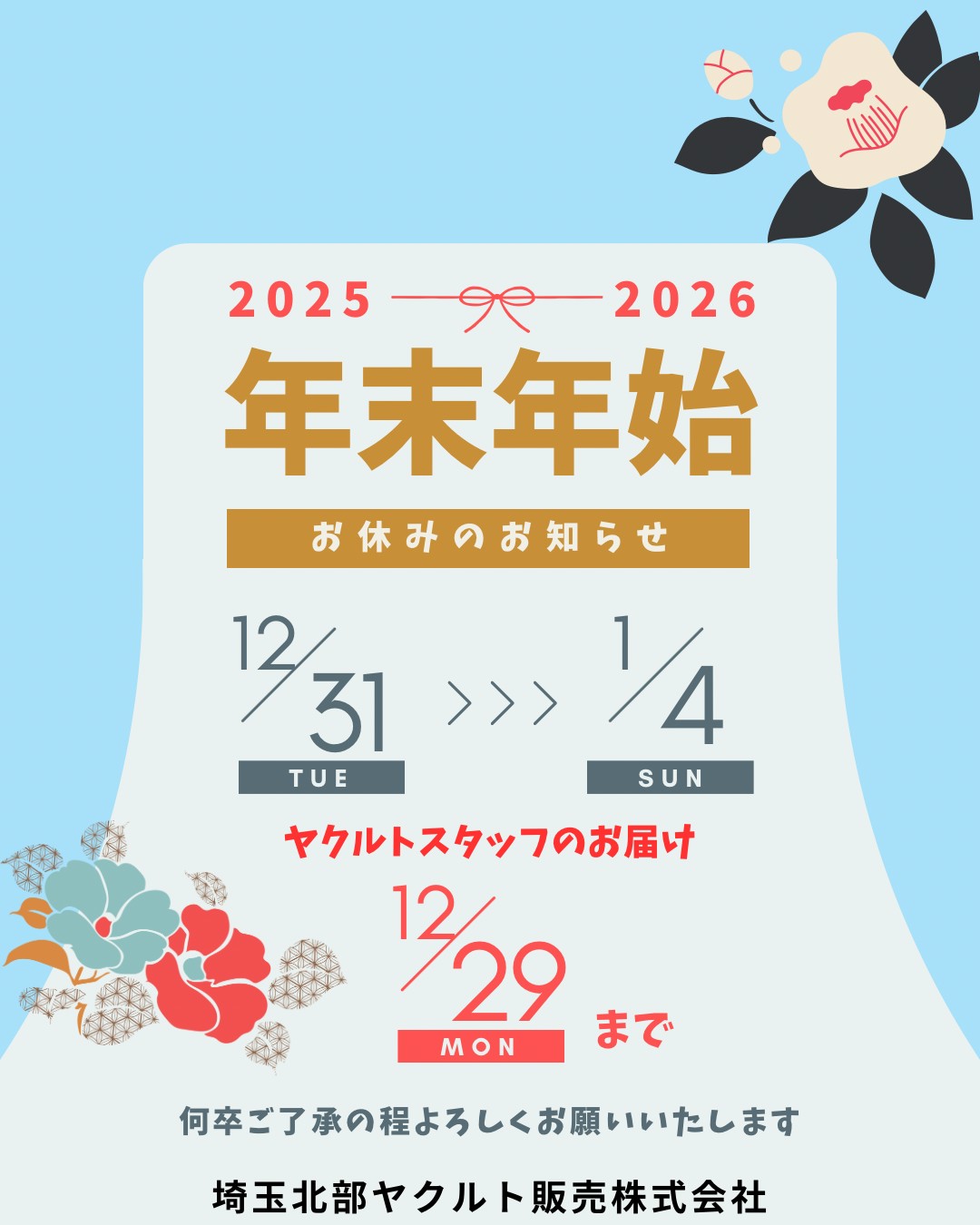 年末年始 お休みのお知らせ